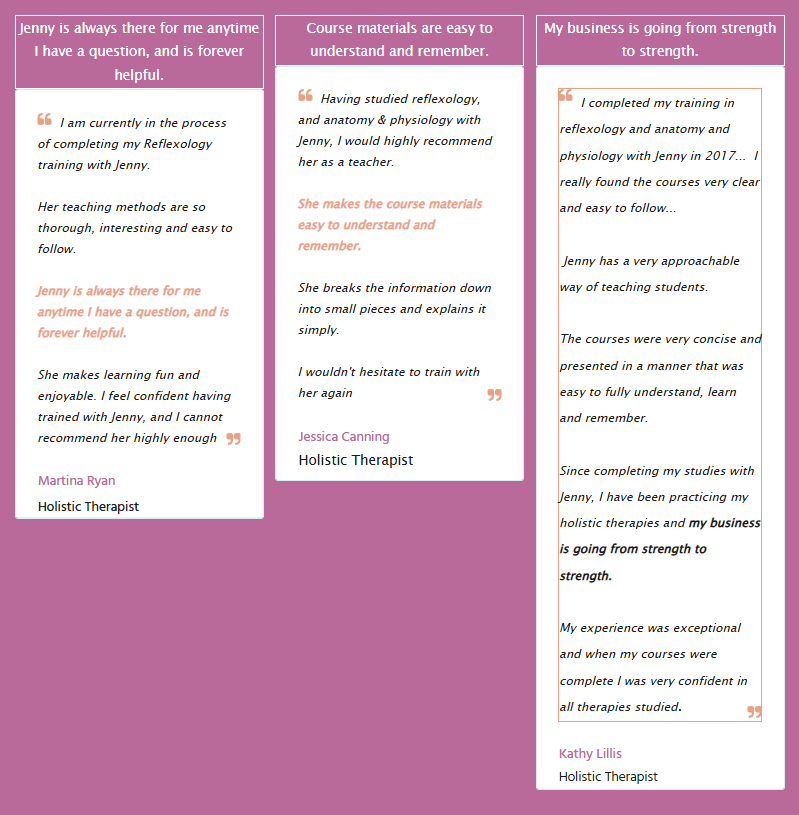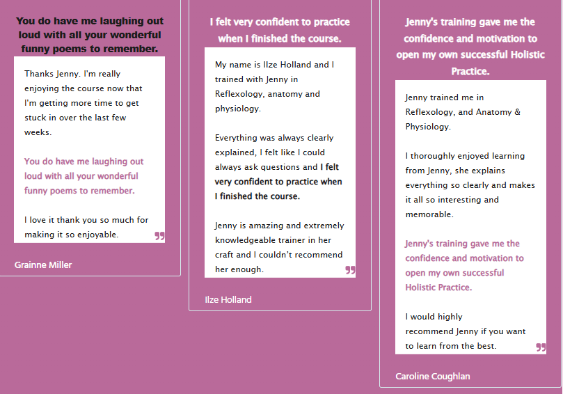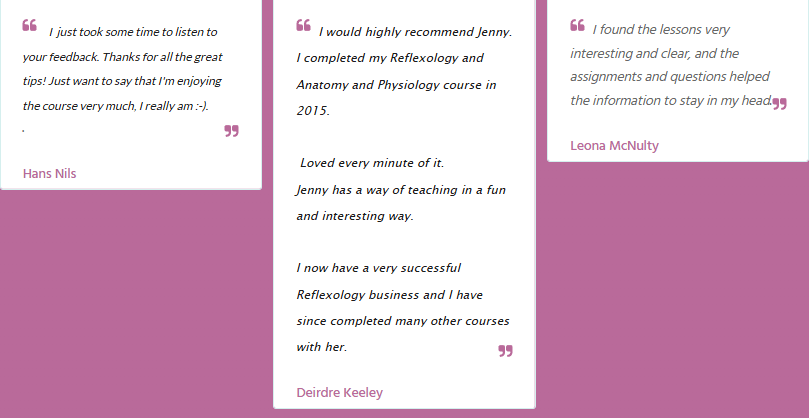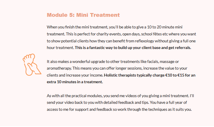 With video and written feedback on your coursework, and email access to me while you study, you'll be a confident reflexologist able to give outstanding treatments your clients will love.